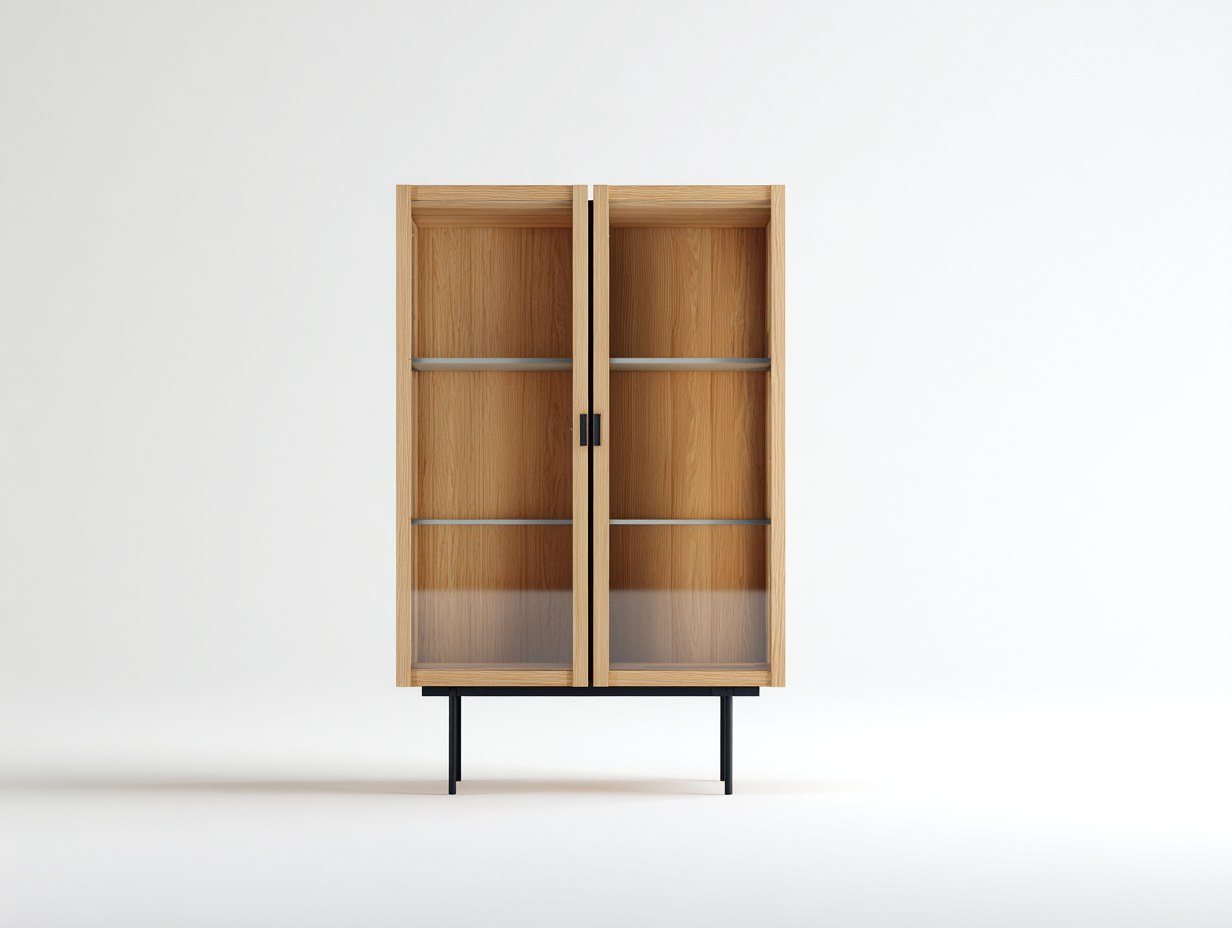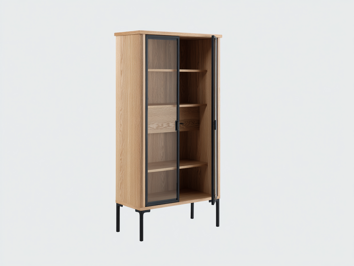 Vitrine moderne en bois et verre 80x38x170 cm - chêne naturel - style contemporain pour salon et entrée