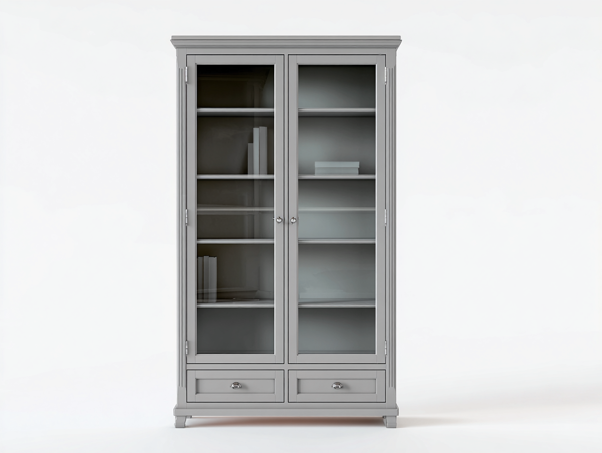 Vitrine en bois avec portes en verre 90x40x180 cm - gris - style classique pour salon et entrée