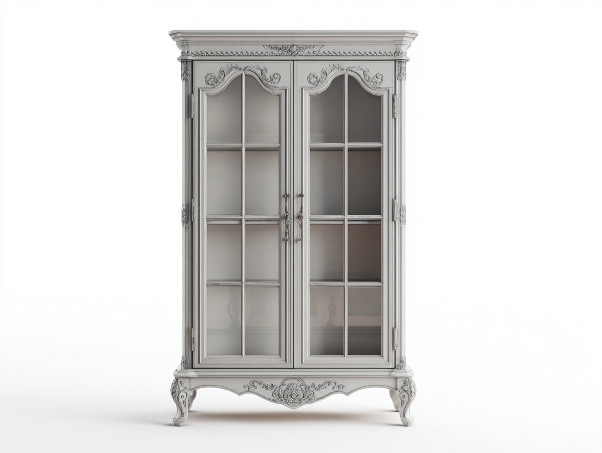 Vitrine vintage en bois avec portes vitrées 95x40x175 cm - gris clair - style classique pour salon et entrée