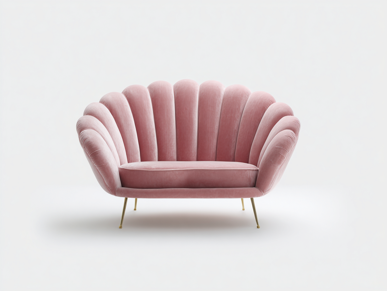 Ce fauteuil en velours à la forme coquille apporte une touche élégante et décorative au salon.
