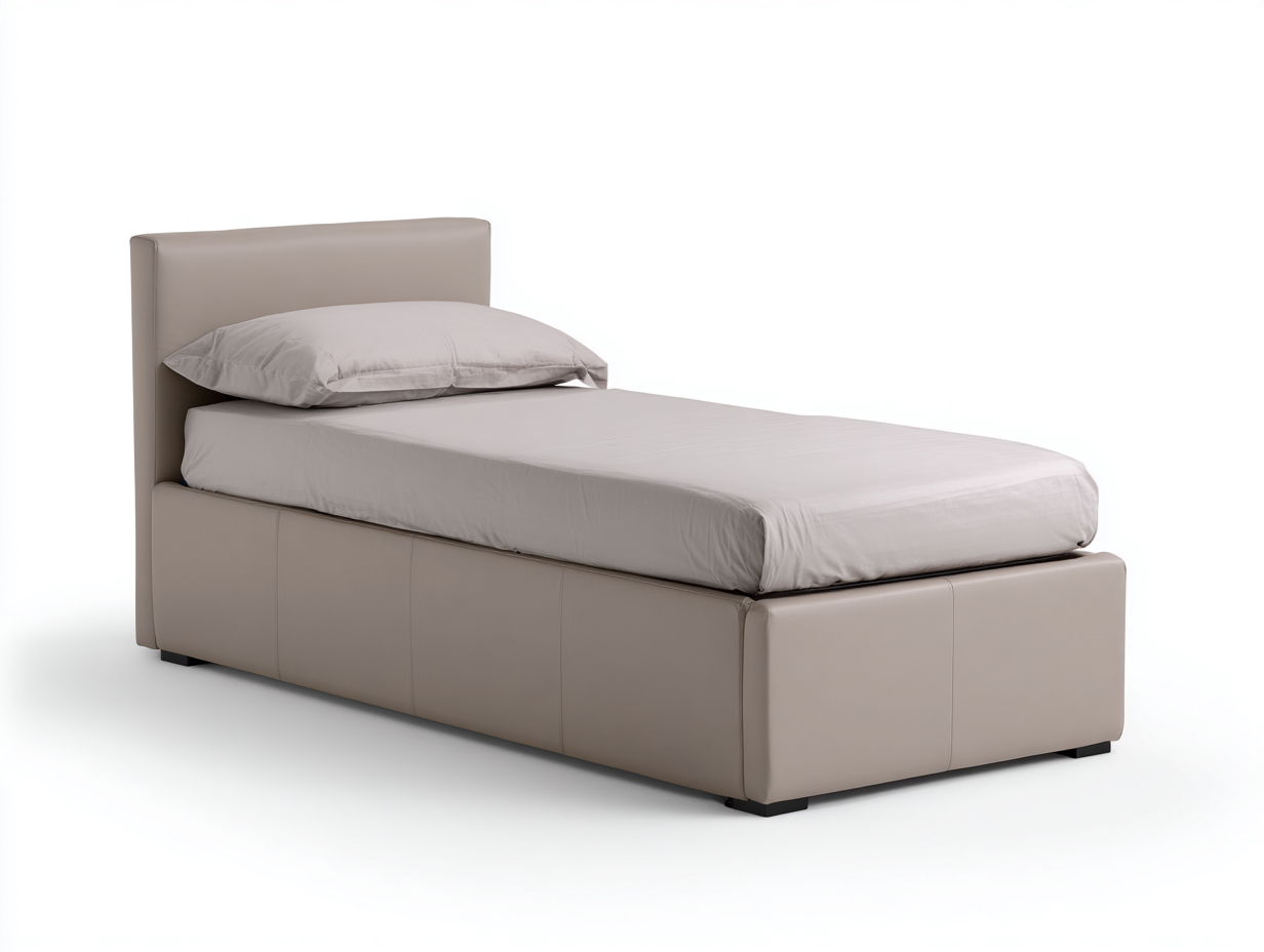 Ce lit simple en simili cuir offre un couchage confortable avec une esthétique épurée.
